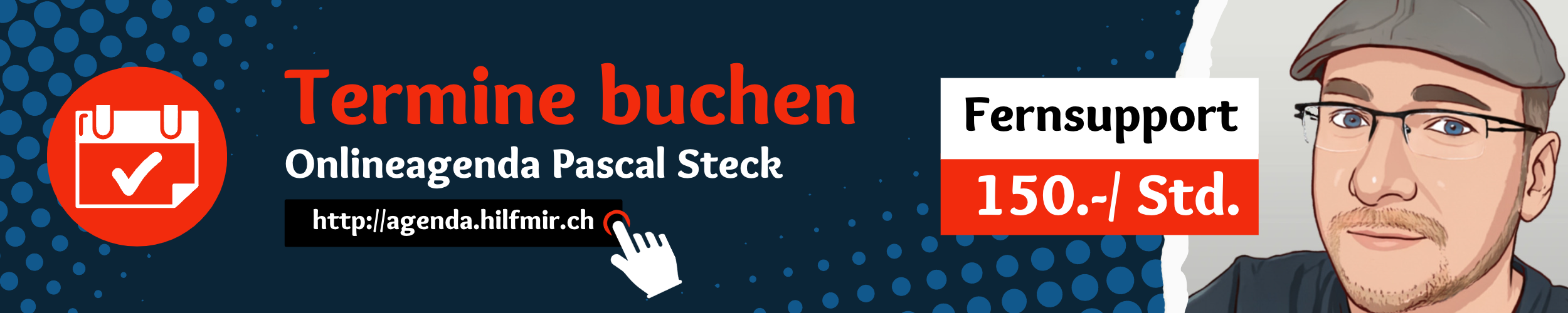 Mein Name ist Pascal Steck, seit 1999 bin ich Geschäftsführer von hilfmir.ch. Eigentlich hiess die Firma PC Tracert Steck.